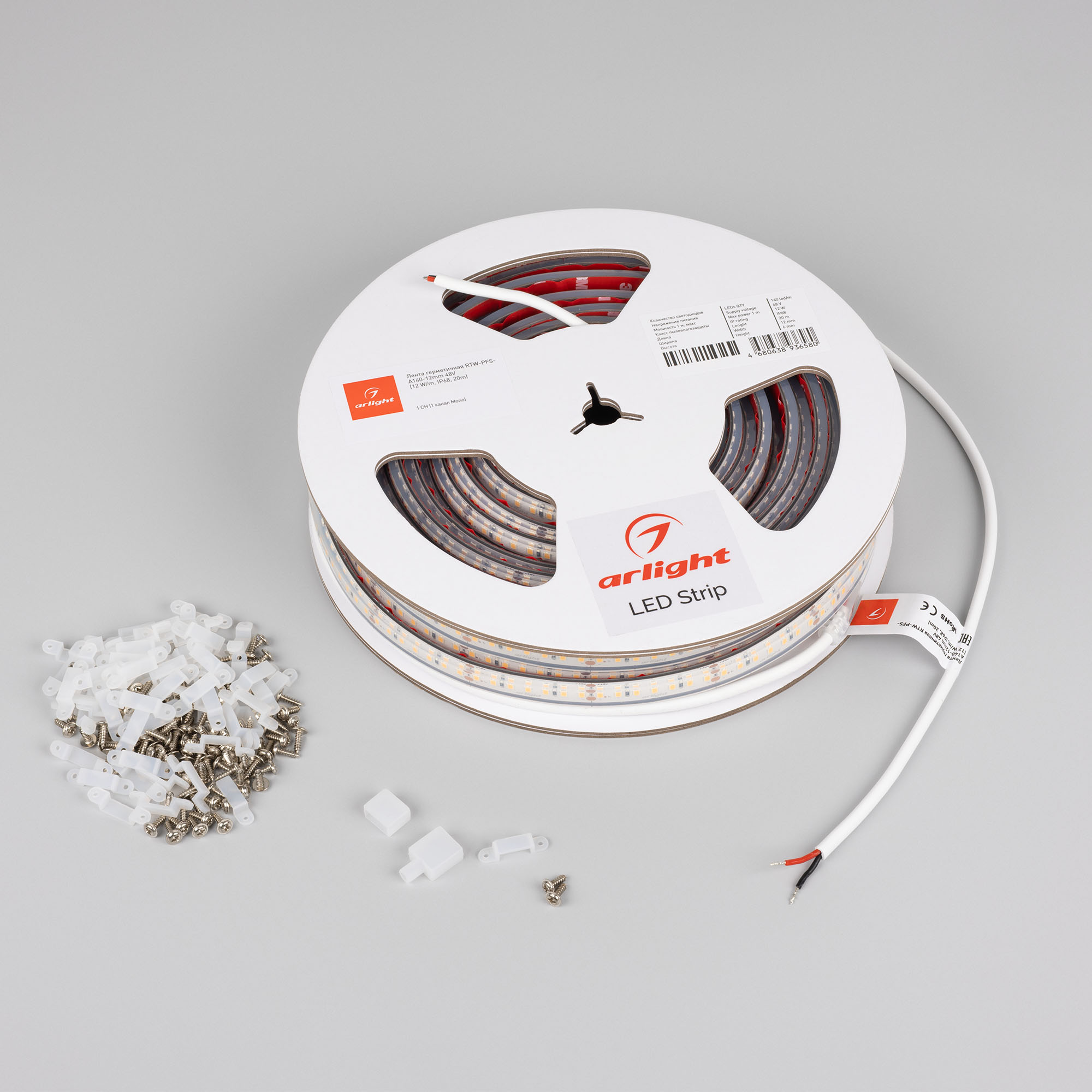 Светодиодная герметичная лента RTW серии A140 с подключением до 20 м с одной стороны. Степень защиты IP68, лента в силиконовой оболочке, устойчива к УФ излучению, широкий диапазон рабочих температур -40..60°C. Светодиоды SMD 2835, 140 шт/м, белого цвета свечения (6000K). Предназначена для декоративной подсветки в помещениях и на улице. Имеет увеличенный кабель питания 1 м для удобства монтажа и установки. В комплекте силиконовая заглушка глухая - 1 шт, силиконовая заглушка под провод - 1 шт, силиконовые скобы - 60 шт.
